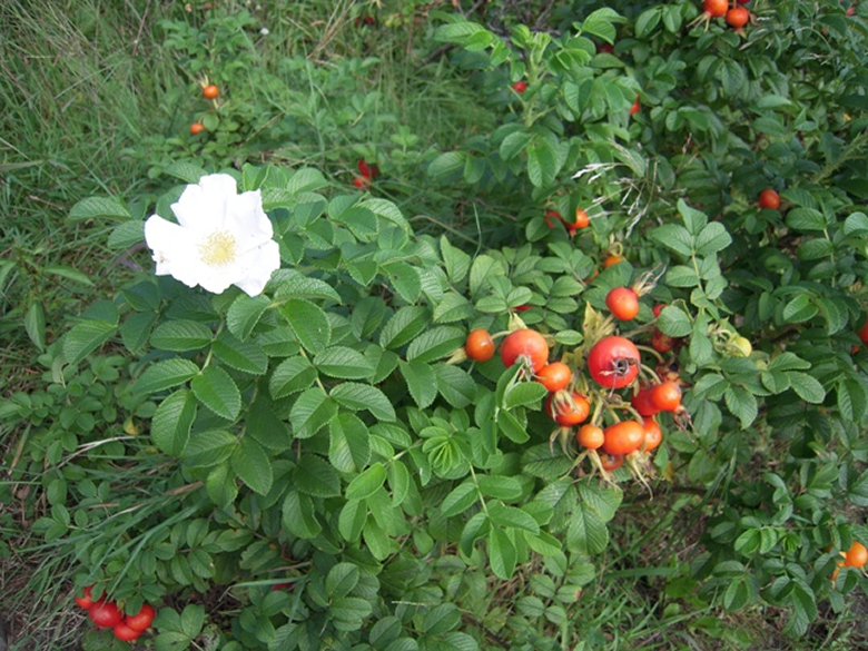 ハマナスはまだ花が咲いていましたが真っ赤に実がなっていました。