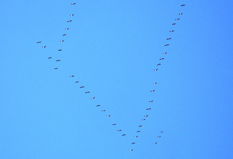 そこで今朝は、デジカメを準備して道路掃除をしていますと、今までにないほどの大編隊が次々と南西に向かって飛んでいきました。