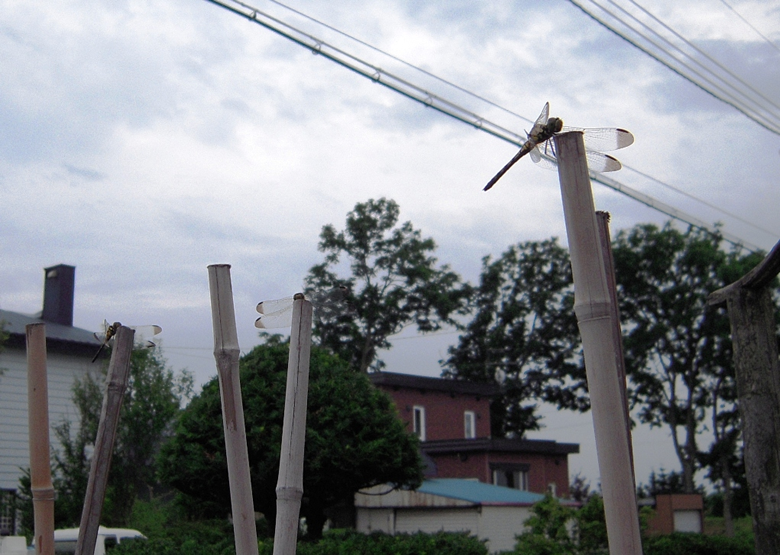 その先に3匹のトンボが止まっていたので撮ってみました。