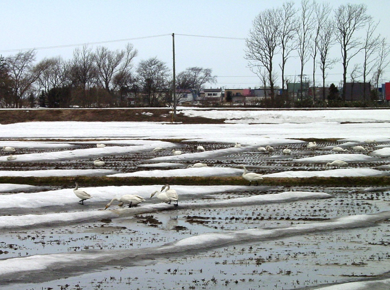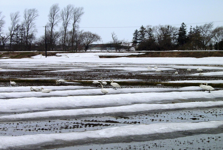 水田に降りている白鳥を探し回りましたところ、ようやく幌向で見つけました。