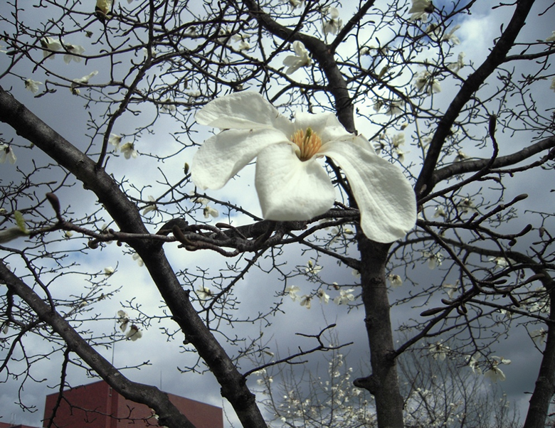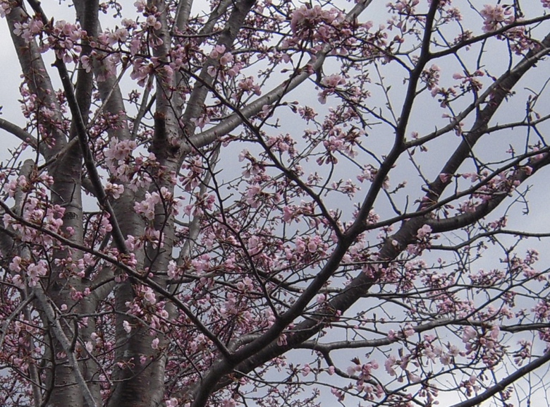 そんな気候ですから岩見沢のサクラはまだ咲いていないだろうと思って来てみましたが、桜の木1本だけ花が咲いていました。