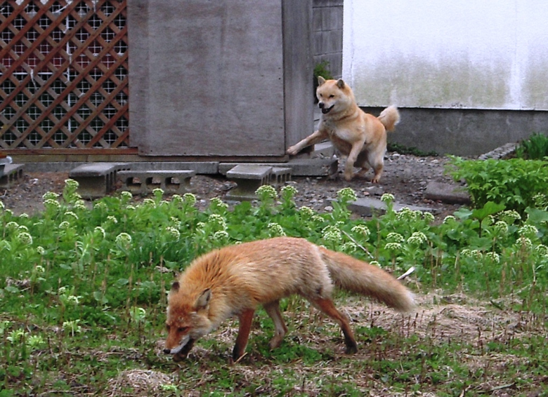 キタキツネと柴犬