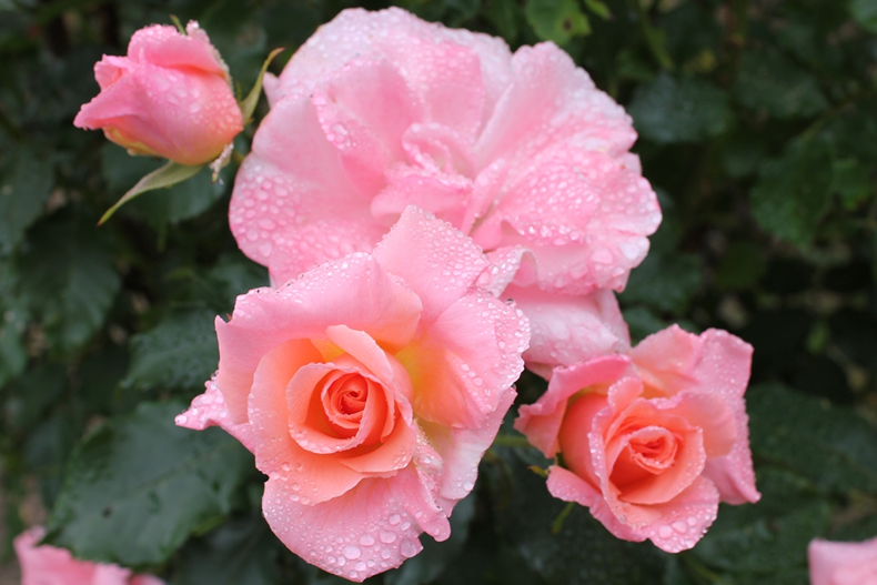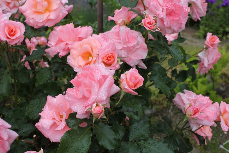 今朝細かい雨が降った時に撮りました。雨にはアジサイですが。バラも雨が似合います。
