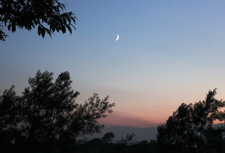 月の入りは19時53分でした。久しぶりの真夏日でしたが、夕刻は涼しくなり、西の空を眺めてきました。