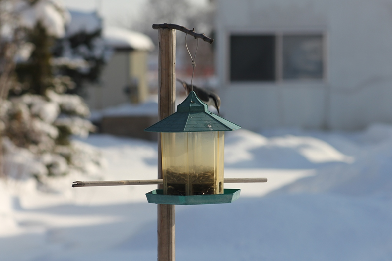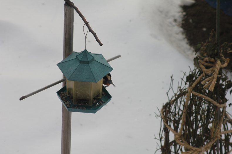 12月3日にエサを出しました。その日にコガラが1羽来てから訪ねてくる鳥はいなかったのですが、今日はたくさん来てくれました。