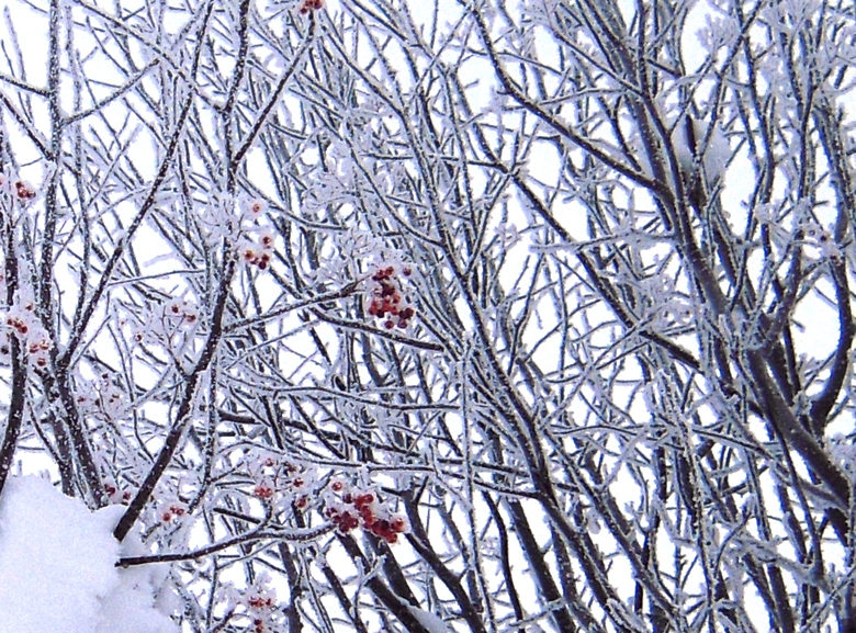 霧氷には、生じ方により樹氷・粗氷・樹霜に分けられる、と辞典には書いています。