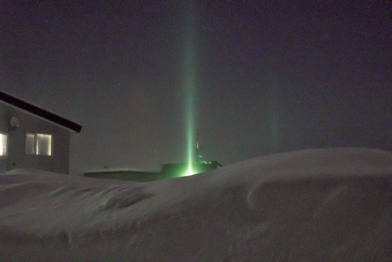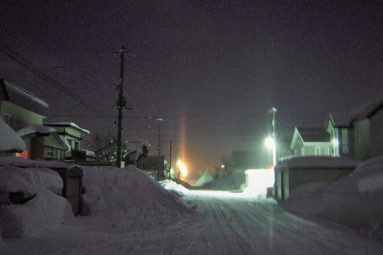 街灯の光が細い柱になって上に昇ったのです。1度消えて、数分後にまた発生しました。