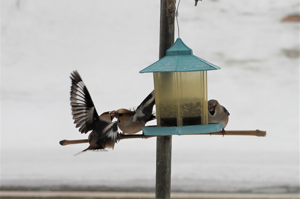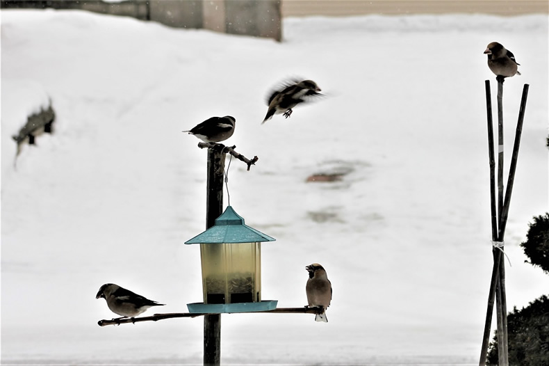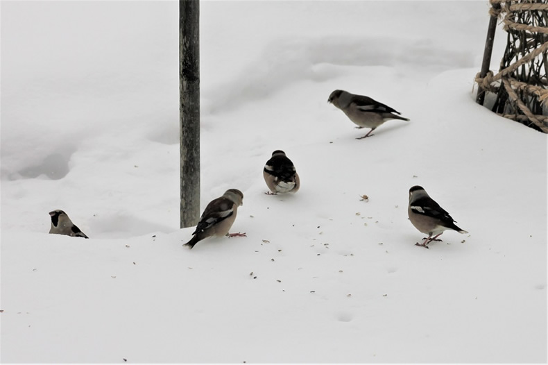 シメの群れがやって来ました。シメが来たのは、2017年2月9日以来の3年ぶりです。