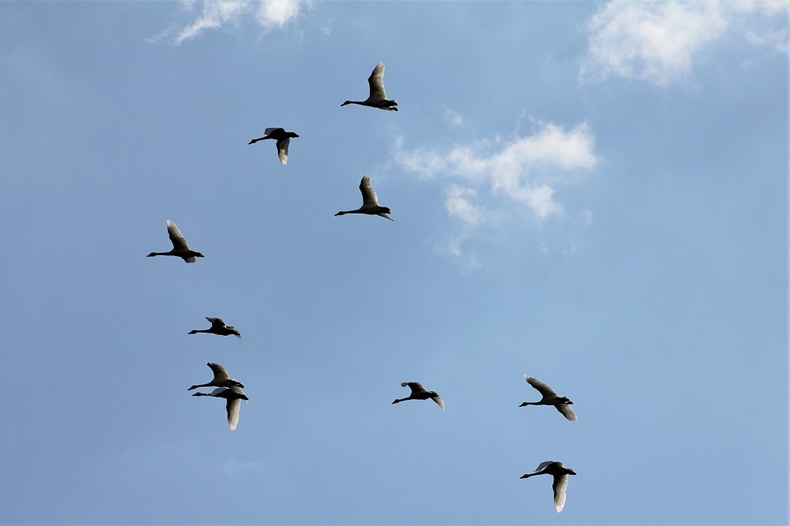 この日は見事な青空でした。青空を背景に飛ぶ白鳥の姿はきれいでした。