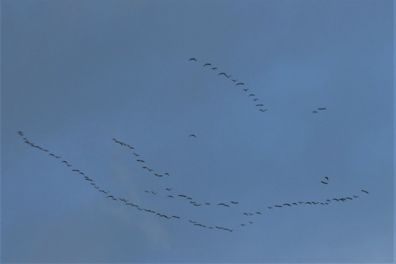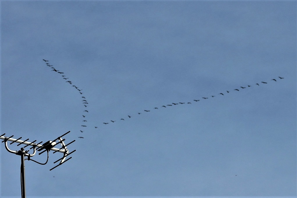9月25日朝、今秋初めて マガン の50羽ほどの編隊を見ました。昨年は9月30日でした。 渡りの正確さに感心します。