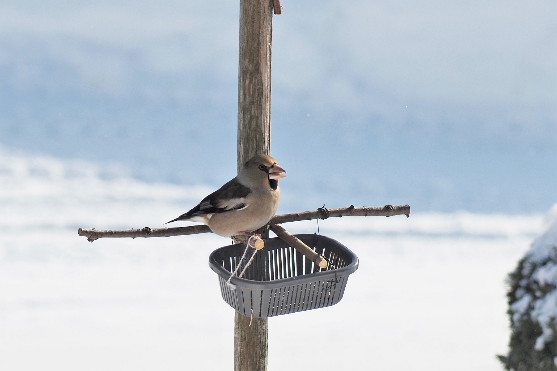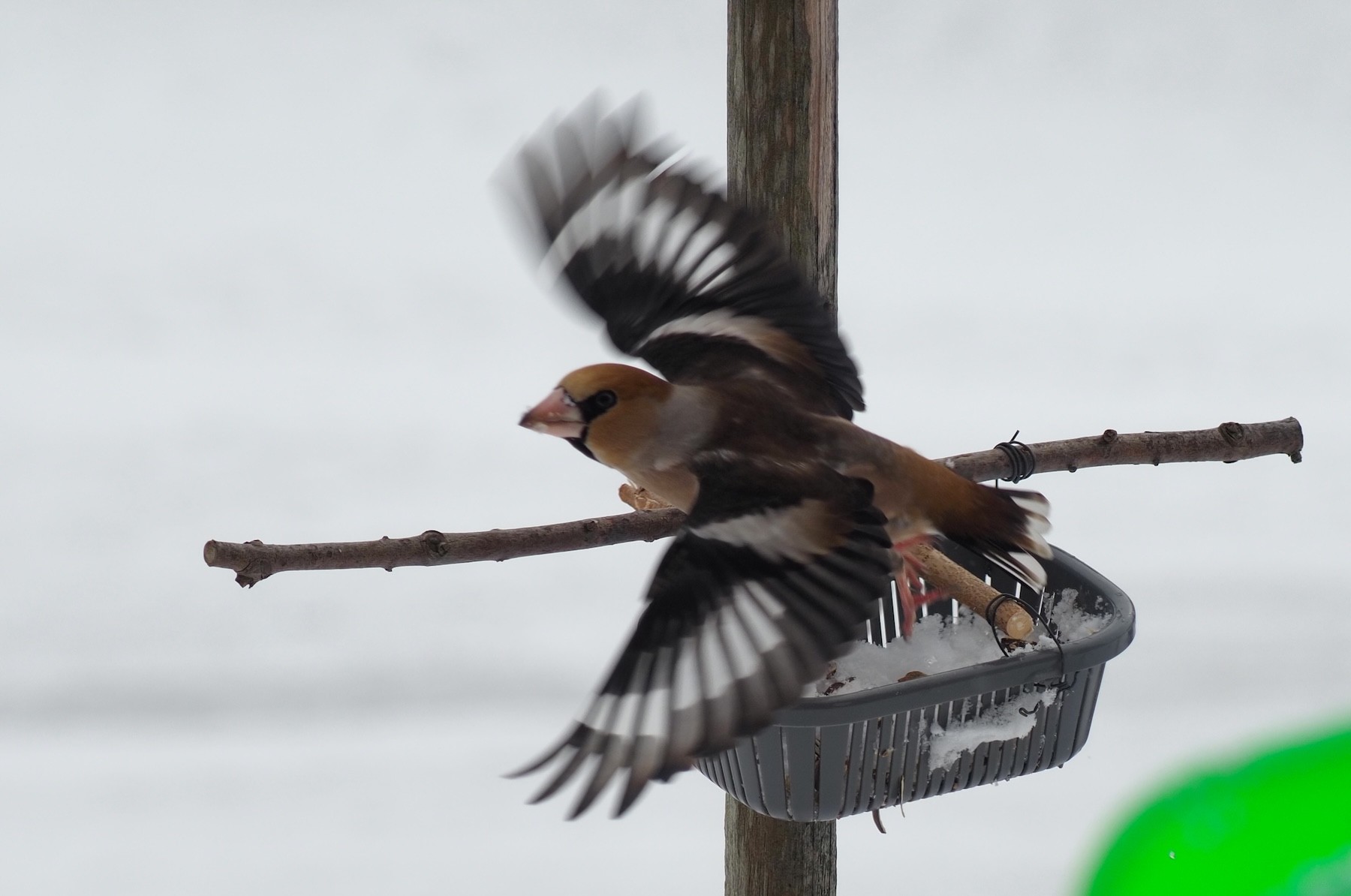 餌台に初めてゴジュウカラとシメが来ました。