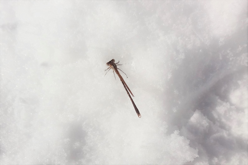 この日は氷点下15度まで下がりました。雪の上のいるトンボを見つけました。