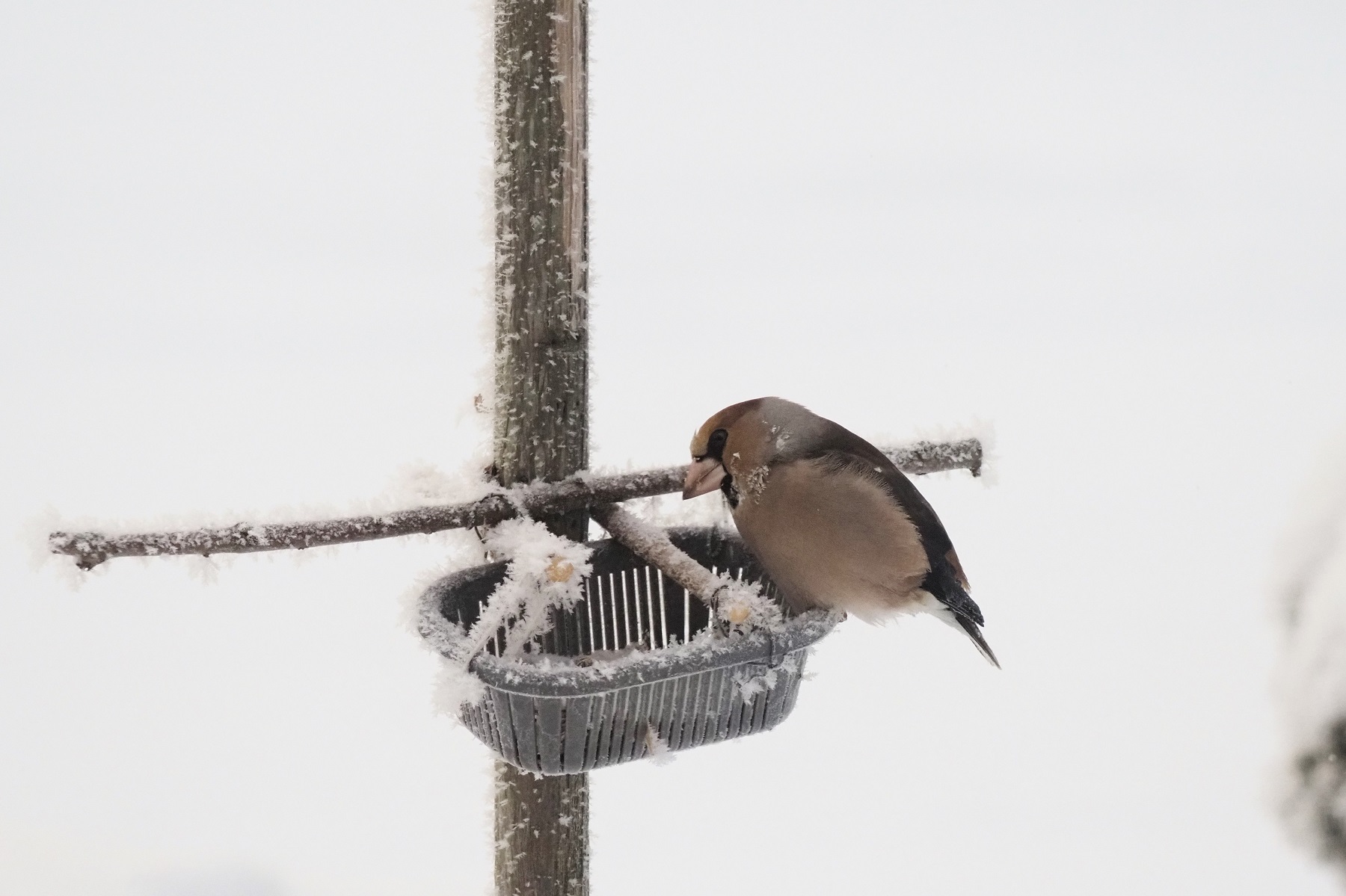 今冬最低の氷点下16.7度まで冷え込みました。食事に来たシメは寒さに困惑しているようでした。